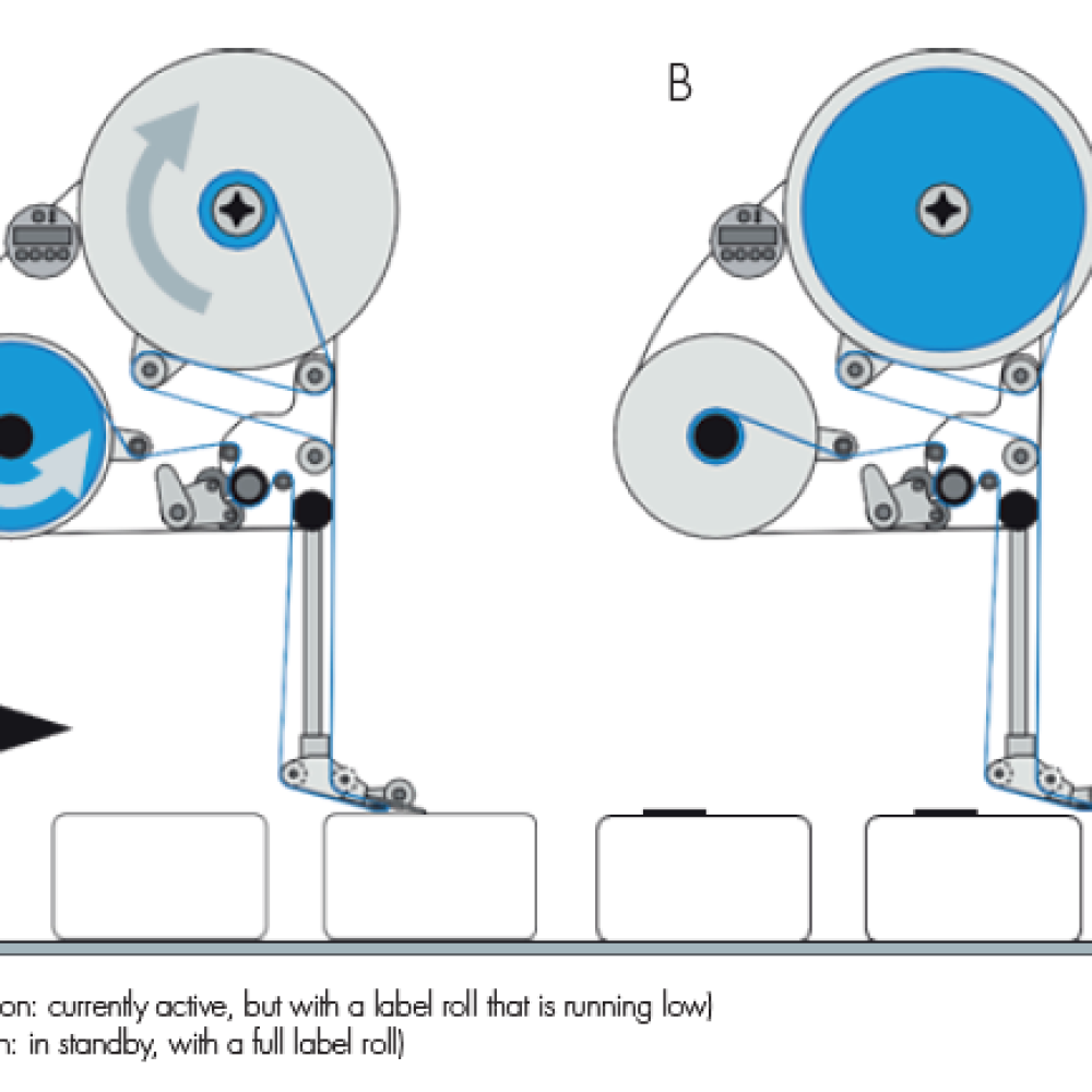 Connect two XLS labellers together in line and they will work together to provide non-stop labelling. When one runs out of labels, the other takes over, while the operator changes the roll, to give continuous running, zero downtime.